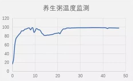 同樣的,我們監(jiān)測(cè)鍋內(nèi)溫度,看林內(nèi)御廚美食灶RB-2QLGV如何熬制一鍋美味粥。